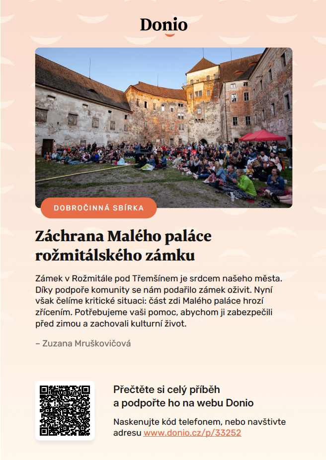 Podpořte prosím naši sbírku a pomozte zachránit kus historie, aby zámek mohl dál žít: https://donio.cz/zachranmezedrozmital
